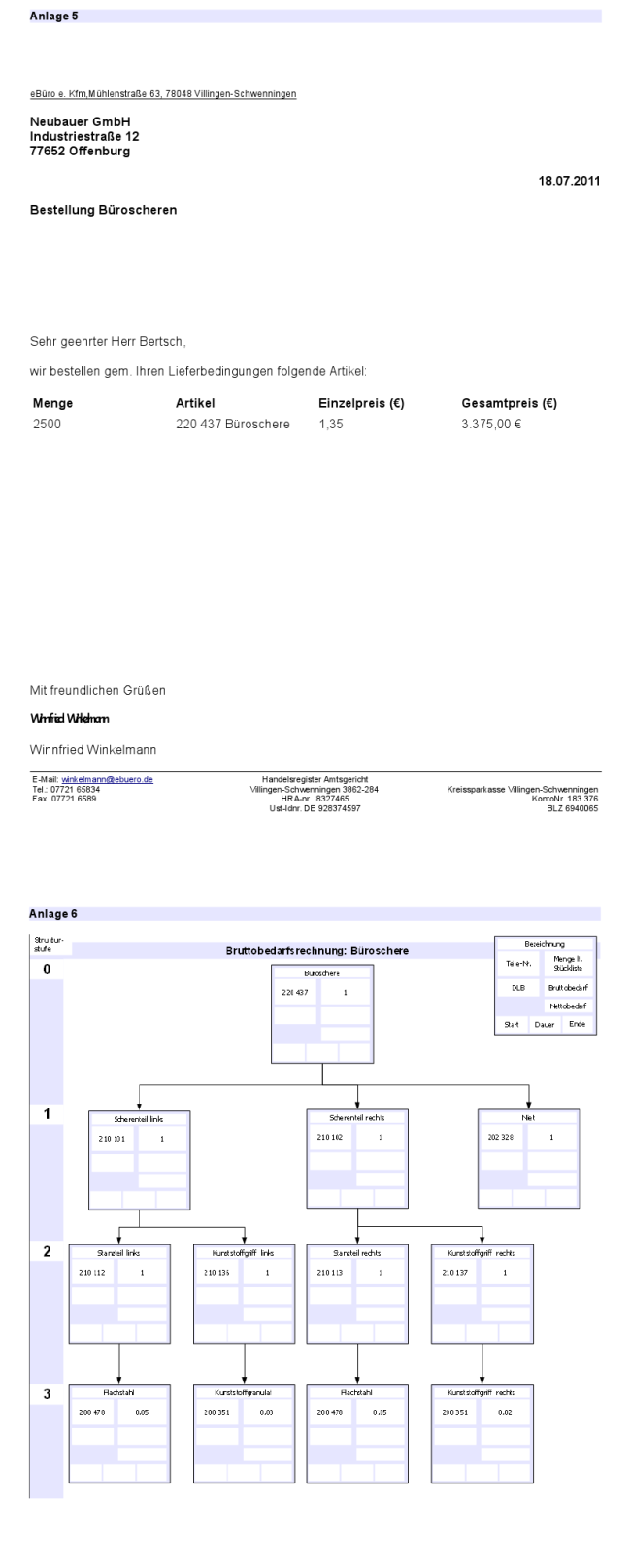 für den Artikel '220 437 Büroschere'. Nutzen Sie dazu die in Anlage 2 aufgeführten Tabellen.