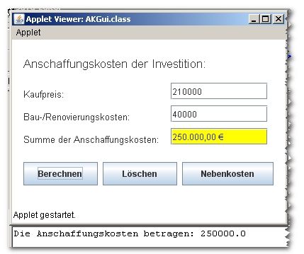 - Die Ausgabe des Ergebnisses soll vorerst nur auf der Konsole erfolgen.