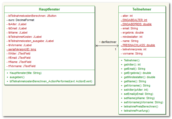 Die Modellklasse (Fachklasse) von einer grafischen Benutzeroberfläche aus ableiten und in Quellcode umsetzen. Implementieren (erzeugen) Sie dazu den Quellcode für die Modellklasse (Fachklasse) in einer objektorientierten Programmiersprache (z.B. Java, PHP, Python).