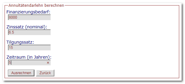 Mittels der folgenden Berechnung kann die Annuität ermittelt werden.