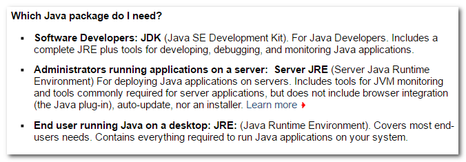 Ein Entwickler benötigt zusätzlich zu der geeigneten Entwicklungsumgebung (egal welche) zusätzliche Software Komponenten. Eines davon ist das Java Runtime Environement (JRE). Diese Komponente ist u.a. im Java Developement Kit (JDK) enthalten und wird im Paket aktuell von Oracle bereitgestellt. Der Java Developement Kit (JDK) umfasst außerdem zahlreiche Werkzeuge und Bibliotheken die den Softwareentwickler bei der Arbeit unterstützen sollen.